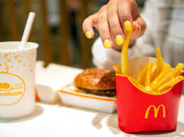 McDonald's bestselling licensed items are their french fries and Big Mac hamburgers; other fare includes cheeseburgers, chicken, fish, fruit, and salads. Wikipedia